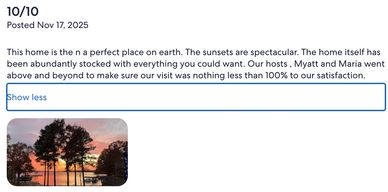 We loved our stay! The home is beautiful! Location is amazing! Myatt was so easy to work with and very responsive to our needs. Our family would LOVE to come back! It is an ideal place to stay in the Lake Gaston area! Thank you!
